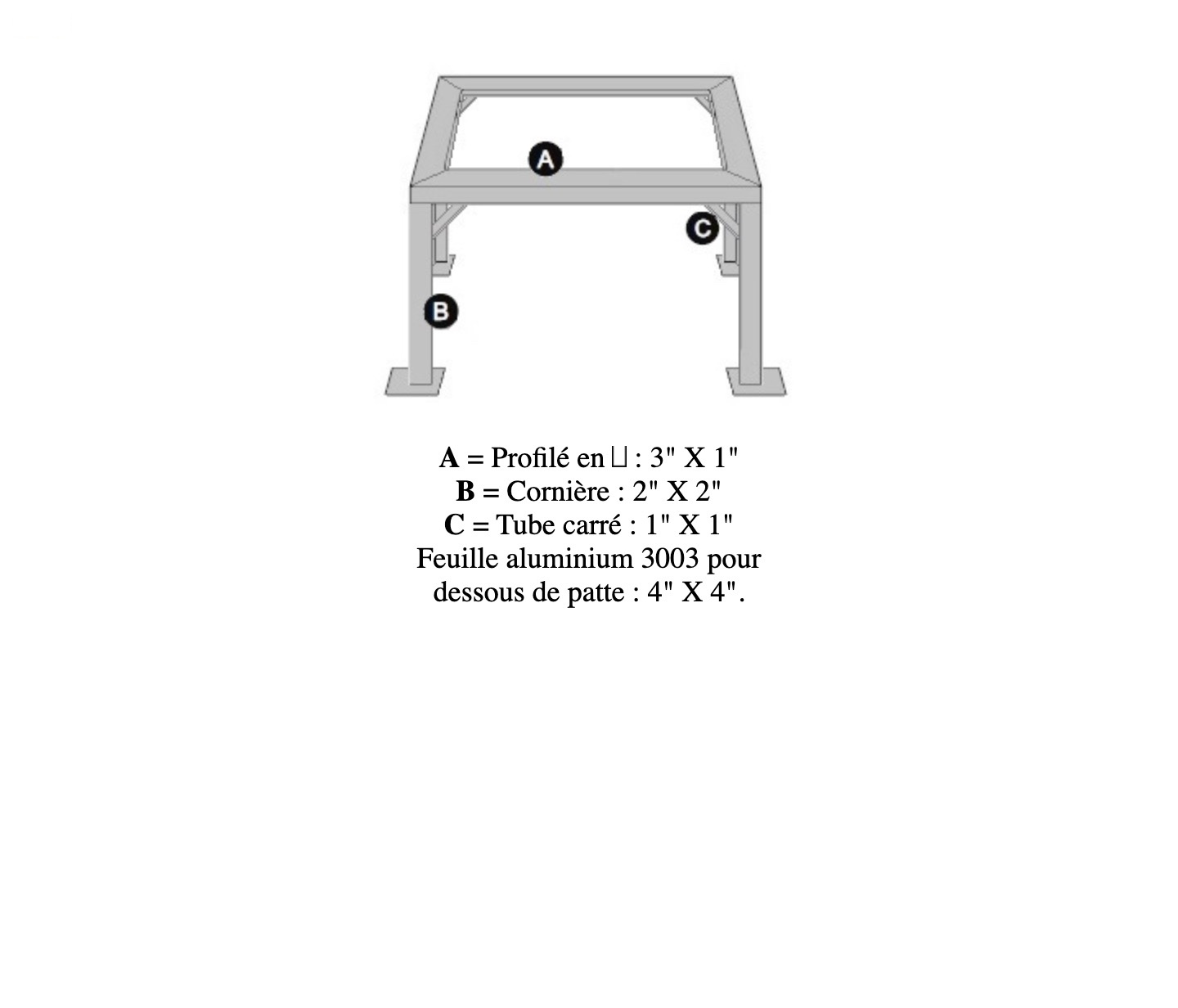 Desssus en cornière de 3" X 1"